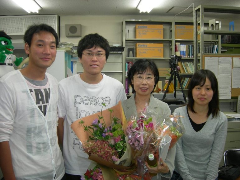 堀川さん博士論文本審査!! (写真追加!) 本日10月4日 21号館9階第5セミナー室にて、堀川さんの博士論文本審査会が行われました。論文タイトルは『アブラムシに含まれる色素成分の構造研究』です。やっぱり堀川さん。時間をオーバーすることなく、落ち着いての発表でした。堀川さん「博士(薬学)」取得おめでとうございます!!写真は、後ほどアップします。(KKにはアップの仕方がわかりません(涙))↑↑写真アップしました!!(お遊び担当)発表後、アブラムシチームでパチリ♪皆さんお祝いコメント待ってマース。 PR