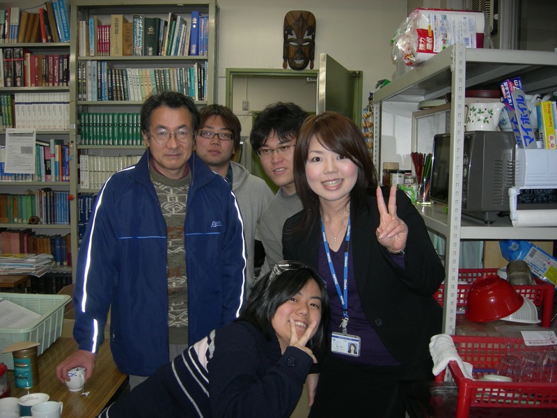 卒業生襲来!! ('09.03.05.) 本日ふらりと卒業生が遊びに来ました。何でも徳大の方で仕事があったとか。持ってきてくれたお菓子をみんなで食べつつ仕事の話など楽しい時間を過ごせました♪また是非気軽に遊びに来て下さーい。 PR