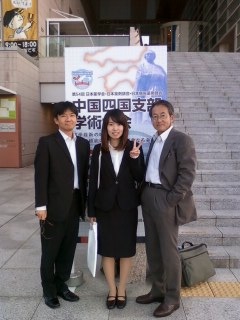 第54回日本薬学会中国四国支部学術大会(高知)で発表!(2015.10.31) こんにちはさて,下のエントリーで告知しましたとおり,先週末高知に出張してきました!そう,第54回日本薬学会中国四国支部学術大会での口頭発表です!10月31日(土)すっきりと晴れわたった空のもと,「高知市文化プラザ かるぽーと」にて,発表しました!10時10分からの発表でしたが,9時過ぎにはPC受付を済ませ,準備万端.発表は? その堂々たる姿,さすがやるな.淡々と8分を終えます.自信なさげに語ってた,質疑応答は? 徳島大学の先生方に多くの質問をいただきましたが,受け答えもしっかりできました.発表後は,「何を質問されて,どう答えたのかさっぱり・・・」とさすがにへばってましたが,デビュー戦としては上出来でしょう!! よくできました!! 発表後にパチり! スタッフ独り占め!この日の夜のお酒は格別のおいしさだったことでしょう! いいね! PR