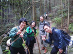 中津峰山(2012.4.29) しばらくご無沙汰していた,山登りに行ってきました!徳島市内の最高峰,中津峰山です.朝,6時20分徳島駅発五滝行きのバスに乗車しました.終点五滝バス停までは,約35分.そこから眠い目こすってスタート,歩き始めは余裕です. (遠くに見えるてっぺんが中津峰かな?)えっちらおっちら車道を登ると,八田五滝入り口につきます.ここからは山道.がんばるぞぉ. 五滝というからにはいつつあるはずなんですが,無念.数え忘れた...まぁ,下のような美しい滝が出てきます.途中厳かな滝もあって,神秘的. (滝マニアがすべての滝写真をゲットしています.)五滝を抜けると杉林.一端車道に出たとき,Sらは「ここまで車で来れるんじゃないですかぁ!(怒涙)」を出しておりました.まあ,綺麗な滝見れたから良いじゃないの.山登りに来たんだし.中津峰公園わきの登山道から,頂上を目指しました!ここからは急な登りでもあったのですが,今井くんを先頭に男性陣速い速い.まってぇ.とはいえ,約3時間で頂上に着いたのでした(パチリ). (ちっぴーもほとんどだっこせず登り切りました!すごっ!)頂上でお昼.みんなそれぞれお弁当を持ってきていたのですが,角田先生がタラの芽の炒め物をしてくださったり,みんなの体を温めるスープのためのお湯を沸かして下さったりで感謝です.落ち着いて少しまったりしたら,下山です.先ほど登ってきた方とは反対の南側へ下ります(これが急で相当きつくて堪えます).途中,浦見の滝に立ち寄りました. そして最後は,車道を下りて生名のバス停まで向かいました.予定よりだいぶ早く帰ることができました.久しぶりの山登りでしたが,みんな楽しく(苦しく)登れました.5年生もまた行きたいといってましたよ.今回,4年生がテスト前ということもあり,参加できず残念!また行きましょう!企画はKKでしたが,西井くんの作ってくれたしおりが役に立ちました.感謝!(中津峰アタックした卒業生のみなさん,懐かしいでしょ?)