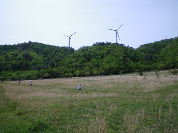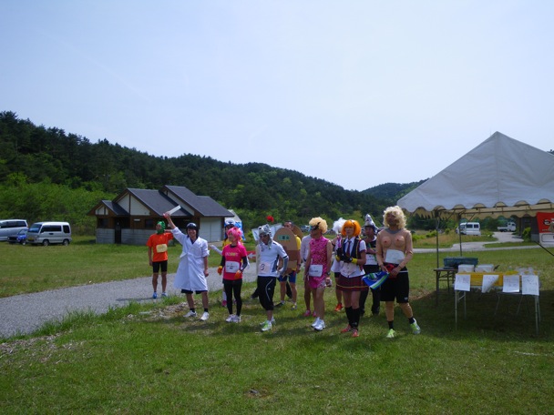 大川原高原クロカン仮装リレーカーニバル2012(2012.5.13)その3 二周目に入ったんです!今井くん → かどちゃん → おぐりん → ナベくん →おいおい,まさかKKまでまわってくるんじゃないでしょうね?もうムリッすよ!走れません!レッドキャップ → アヤネさん ここで,ドクター部長さんにまわしたところでタイムアップ!(ほっ)ラストランはみんなで,走りました. (みんなで感動のゴール!!)結果は,16周で,おそらく4位くらいです.トップ3のチームがすべて18周代だったことを考えると,大健闘ではないですか?すげっ.おっさんのKKがいなかったら順位上がってたかも...でも,まあ良い遊び,運動をしました.こんな企画も良いですね.この日は応援団もいました!KK一家,(足を故障したので走れなかった)ヒガちゃん,(実習前だったのでこの日は棄権の)まーきー&りぼです.応援ありがとう!最高の応援団でした!司会の人にもほめられました.次回は是非一緒に走りましょう!最後は全員で撮影(赤レンジャーとマヴェルさんにも入ってもらいました) 帰り道,まーきー,さらちゃん,おぐりん,りぼの5年生女子は,来年何を着て走るか,相談してました...確かに,仮装では完敗でしたね.追:この後市内に戻った後,学生さんたちはバレーボール大会の練習に行ったんだって.元気だねぇ.