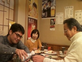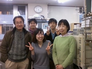 卒業生来研!(2016.01.23) 週末は,記録的な大寒波で日本列島は混乱しているようですが,週もあけて皆さんのところは大丈夫ですか?さて,そのさなか,おとといの土曜日には卒業生が帰って来てくれました!6年制 二期生「ヒガちゃん」です.なんとお久しぶり! お帰り! ホントうれしい.研究室にはテトラフェニレンチームがいたので,先輩に会えて話も弾んでます.夕方は,学術講演会があったので,KKは参加だったのですが,何とヒガちゃんも特別に聴講.その後は,慌てて居酒屋へ.角田先生,堀川さんも合流です. 久しぶりに角田先生へ! なんか緊張してない??この日は試験前最終日で片付けに来ていた3年生の増富くんも参加 TPチームなわけね.この日,2時に来た彼ですが・・・何と夜の9時のバスで三ノ宮まで戻らないといけなくて・・・あえなく,一次会で終了.でも楽しいひとときを過ごしました.遠くてなかなか帰ってこられないと思いますが,是非また帰って来てね.ここは第二のふるさとです!!