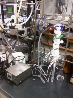 あったカラム(2012.03.03) 今日はひな祭り!(だから・・・・?)ふざけてないで,たまには真面目な投稿を. 大学は春休み期間中ですが,品化は営業中!有機化学実験は,反応の仕込み反応チェック抽出精製 の流れ. 学部生のみんなはそれぞれ,個別のテーマで実験をしています. なかには,取り扱いが難しい化合物もあります. この時期,気温が低くて凍っちゃう・・・カラムでの精製中に固まっちゃう・・・そこで,カラム管ごとあっためちゃいました! こんな装置.リボンサーモで巻いて温度制御中! 3年生の伊勢タンが頑張ってます!
