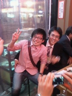 日本薬学会第134年会 夜の部 学会での発表後の楽しみは何と言っても,夜の食事です.その土地土地のおいしいものをいただきながら,一杯やります.発表後のお酒はまた格別!今回は熊本! 馬料理に魚料理,辛しレンコン,一文字ぐるぐる などなど・・・また年会には,薬品化学の卒業生もたくさん集まります.28日の口頭発表後の打ち上げでは! いないさ〜ん 御手洗さん (誰や!膝のうえ乗ってんのは!) (堀川さんの腕の振り過ごすぎっ!) あ??山口高さんの写真無い? おいって! じゅんさんごめん29日は,前述の御手洗さんとその奥さん(品化出身のりさん),これまた珍し、西谷さん(とその奥さん)に出会いました.写真はまたもゲットできず(涙)子供達もかわいかったぁ.両日とも楽しい夜を過ごしました! でも,おなかポッコリになってそう!? やばっ.ダイエットしなくちゃ.