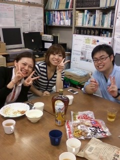 もうすぐ卒論! 卒論前最後の土曜日....どこの研究室もそろそろ店じまいな感じですが,品化はまだ本気で実験中!!今年の6年 ぱねぇです.いやぁ,頑張るなぁ.すげぇ.しかも,どしどし結果出してます! いいね!!そんな中,去年の頑張りやさんたちが帰って来てくれました. カッキー,あやねてぃ,よしいくん6年生の激励に駆けつけてくれました!(手前にあるカンカンは,スタッフへの気遣い)卒論の練習につきあおうと,勇んで来てくれました.しかーし,今年はまだ実験中!それでも,質問対策してくれました.感謝!