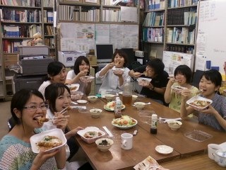 卒論発表会前日!! ついに来ました,今年も卒論!みんな明日に控え,練習しております.まだまだ,覚え切れていない人もいますが,明日には仕上げてくれるでしょう.さて,品化卒論前日といえば,恒例の「カツ丼」パーティ. 明日は,「己に勝つ」「質問者の質問に勝つ」でしょうか?なんにせよ,おっとこまえの発表期待しています!(あれ,ほとんど女子だった?)KK