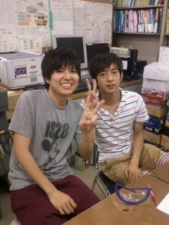 卒業生来襲(2013.08.02) 卒論も無事終わり,出張帰りでまったりムードのKKです.さて,本日(きのうも?)卒業生が帰ってきてくれました!!! この春卒業の加戸くん(隣でナベくんも大喜び)相変わらずのスマイル全開です.連休がとれたらしく遊びに来てくれました!!卒論が見られなかったのは残念だけど,後輩思いの彼は,ねぎらいにやってきてくれました!ありがとうございます.品化 いいね!