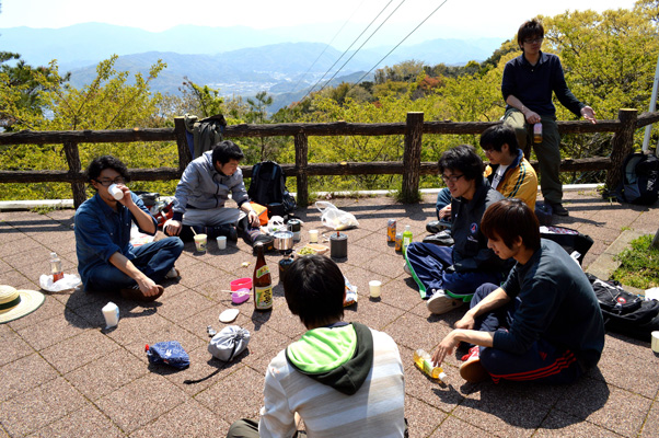 眉山アタック(2013.4.13) バトンタッチいたしまして、続いて眉山アタックの記事です。毎年恒例、品化イベントの眉山アタック(今年に入ってもう二回目ですが…)数日前の嵐で桜が散ってしまったのが残念ですが、品化にとってはあんまり関係ないかも(笑)今のうちに遊んどけ!って感じです。今回は特別ゲストとして岩岡さんも参戦です。新配属の4年生も登ってます。(登ってる途中、弱音を吐く男子もいましたが…笑)とりあえず、山頂で集合写真。 (岩岡さんの顔が…)いつもの場所に移動して、この人にまずはご挨拶です。さらに成長しております!毎年、ここに来ていますが、お酒しか与えていないのに…さすがです(笑)この日は非常に天気が良くて、ぽかぽか陽気でした。眉山の上でサッカーとか、キャッチボールをするのはわかりますが、今回はなんと…ででーーん!!『黒ヒゲ危機一髪』をやってみました!これが女子達に大盛り上がり!こういうの品化らしいねって思うのは僕だけでしょうか?男たちは岩岡さんが持ってきてくださった『三岳』を飲みながら『タケノコの刺身』をいただきました。これがまたウマイ!!これで新配属生たちもすこしは品化に馴染めたかな?新年度が始まった薬品化学。これからどんな遊びをするのでしょうか(笑)?頑張ってブログをアップしていきますので、皆さんコメントよろしくお願いします!(たまにはちゃんと実験のこととかもアップしますよ)
