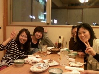 卒業生がやってきた!(2013.4.27) パート2 前のエントリーにもあるように,先週は南さん,アヤネさんが来てくれましたが,夜にはその一学年上のお姉さんたちがやってきました!早速,駅前の居酒屋に出向き,一杯. (あいべちゃん,谷ちゃん,ゆうさん)皆さん相変わらずパワフル!元気.楽しい一日でした.また帰ってきてね.