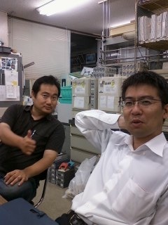 卒業生襲来!(2013.6.14) あら,ブログ更新を頼んだんですが,卒論前だし,忙しい?バレーボール大会とホタル狩り.よろしくね.さて,昨日夕方にこの人たちが来ました! 角田研一期生の「べーやん」こと阿部くんと「いさまん」こと伊佐くんホントに久しぶりの品化来襲でした.薬局薬剤師としてバリバリやっているお二人,いろんな話が聞けました.スポーツファーマシスト,実務実習,医療倫理,医療過誤 など 学生さんが聞いてもためになる話が多かったようです.実験が忙しく,あんまり参加できなかった学部生もいてちょっと残念.まあ,また来てもらいましょう.