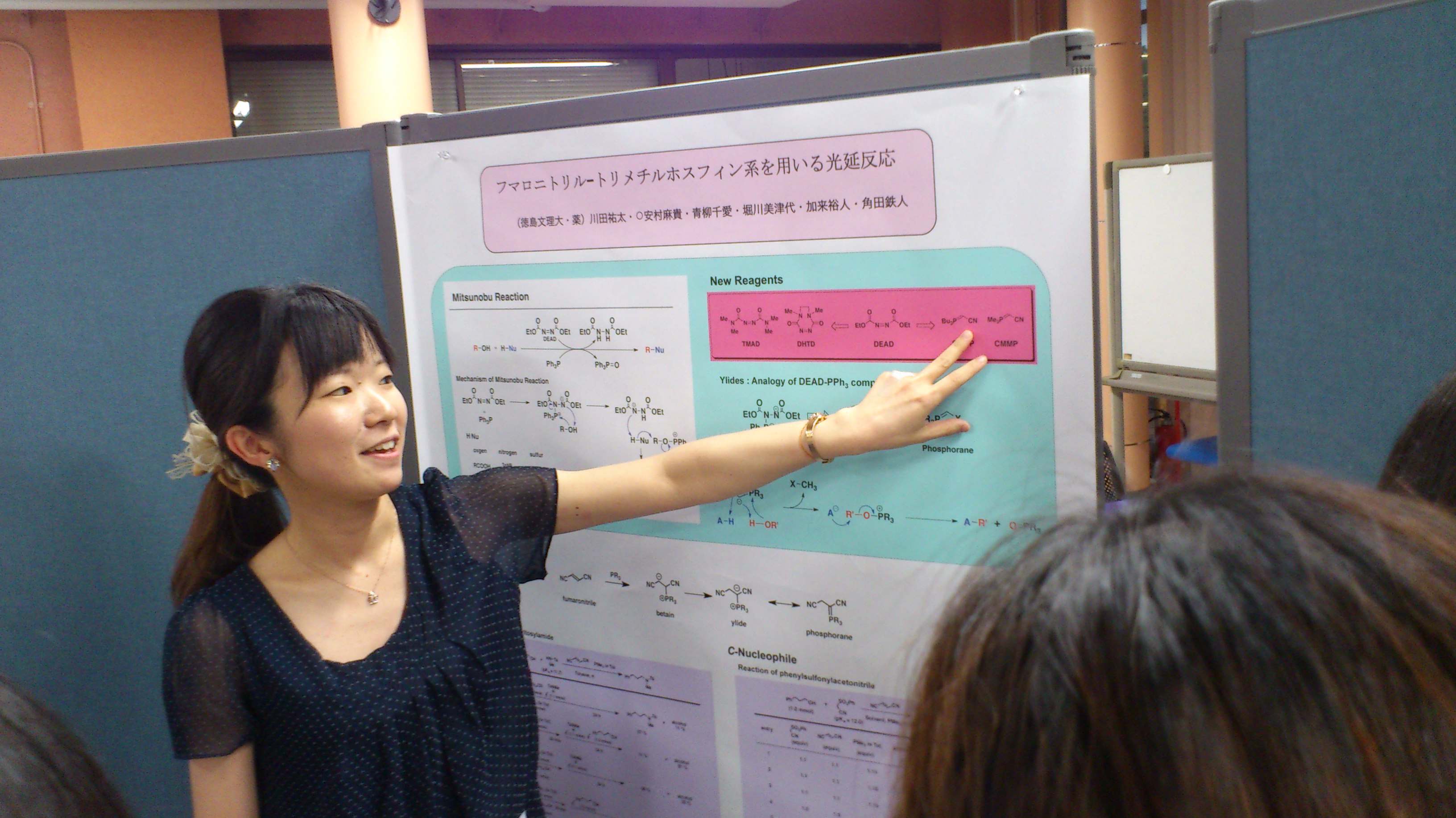 第11回プロセス化学会東四国フォーラムセミナー(2013.6.15) 先週末は,プロセス化学会東四国フォーラムセミナーに出掛けました.今年度第1回(通算11回目)のフォーラムセミナー,今回は,徳島大学薬学部におじゃましました.第一部の講演会では,「ペプチド医薬のこれから」笹岡先生 「ペプチド製造のプロセスイノベーション〜大学発シーズの実用化までの軌跡」河野先生 の二演題を聞くことができました.両演題とも歴史的な背景を踏まえ,非常に丁寧に分かりやすくお伝えいただき,学生さんたちも聞き入っておりました. 特に,河野先生の講演では,認識チームで最近慣れ親しんだ次の化合物が出てきて,最近さわっているさらちゃんも目をぱちくり.研究室では,低溶解性の有機化合物に対する溶解補助剤として使っていましたが,ペプチド医薬品の合成にもってこいの化合物なのだとか(今では,少し改良したものに変えているらしいです) どうです? シミ雅さんやこむーちょさん あたりは懐かしいかと懇親会の席では,今回もポスター発表です!今回品化からは一題.まきさんです. 『フマロニトリル-トリフェニルホスフィン系を用いる光延反応』 川田裕太,◯安村麻貴,青栁千愛,堀川美津代,加来裕人,角田鉄人みよ,この堂々たる発表の勇姿! やっぱり今回も人だかりができていました.まきさんいい経験になりましたね.どんな質問がありましたか?しっかし,すでに光延反応の領域を超えてませんか?これ.と思ってみたり...品化 いいね! PR