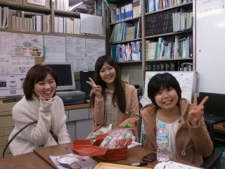 秋の品化訪問者(その2) 訪問者その2は本日登場の面々この春卒業した・・・谷ちゃんこと 谷由紀子さん(右側)チエチエこと 青栁千愛さん(左側)機能形態研究室の浅間さんも来てくれました.今日は,飲み会!と張り切って行きました!次回はゆっくり帰ってきてくださいね.