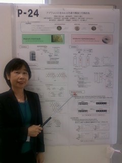 第54回天然有機化合物討論会 こんにちは今週は連休に挟まれて4日しか平日がない週なんですねぇ.そんななか,品化スタッフは「第54回天然有機化合物討論会」に出席してきました!!18日から20日までの三日間東京は,東京農業大学にて行われました.天然有機化合物を扱って研究をされている方が日本全国から集う会で,有機化学の分野でも最大規模ではないでしょうか?今回品化は,アブラムシ色素の研究より 『アブラムシに含まれる色素の構造と生物活性』というタイトルで堀川さんが発表でした. (発表前にポスター横でパチリ!) 反響はといいますと... 出だしから,人・人・人 ものすごい大盛況.時間内で一番の盛り上がりと言っても過言ではないでしょう. 110分質問されっぱなしに答えっぱなし.さぞ疲れたことでしょう...終わった後はふらふらになってました. ご苦労様でした. 非常に興味を持っていただけたようで,充実した発表となりました.よかった! コメント欄にも時々登場する「元職員さん」にも会えました (相変わらず元気.方向音痴も治らず!) 意外なひとからも,ブログ見てるよといわれたり... 次は認識チームから発表出したいですっ!