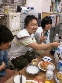 角田家におよばれ(12' 5. 12) かなり更新が遅れてしまいましたが、先月の12日に毎年恒例、角田先生宅にお邪魔し、手料理をごちそうになりました。5年生は病院•薬局実習、6年生は卒論に向けて頑張って行きましょう!と、実験ばっかりじゃ疲れるからたまにはね!という角田先生なりの激励会です。今年もサラダから手羽先(これがめっちゃウマイ!)、豚の角煮、外ではBBQ、ピザなど本当においしいものをたくさんいただきました。男たちは外でBBQの準備。残念ながら写真がありませんが、今年の目玉は『マグロの頭』です。しかも二つ!どーやって調理したかというと、ダッチオーブンの釜と釜を合わせて蒸しました。写真がないのがほんとに残念…。みんな楽しそうです。夕日を見ながらのビール。うまかったなー。そろそろ終盤。品化女子たちがピザをつくっています。とてもおいしかったです!このときに英気を養えたのか、実習や卒論に向けて皆さん頑張っています!5年生はまだまだ先は長いですが、実習をしながら実験をしています。一緒にがんばろー!!6年生はあと二ヶ月!良い卒論にするためにも、必死にやっていこー!!(ドクターの僕も必死にやってますよ)ちなみに、この翌日はすでにブログに更新されています、『大河原高原クロカン仮装リレーカーニバル2012』に参加するため、朝7時半に集合しました。