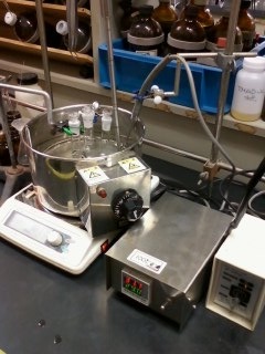 移送実験スタート KKとその一派が,ラセミ体のケトンを光学活性体へと変換する「デラセミ化法」の開発をしていることは,以前のエントリーでお話ししました(ここ).KK一派は他に,「バルク液膜を使ったカルボン酸類の不斉移送」の実験を行っています.4年制時代のマスターが確立してくれた移送実験ですが,ここのところ全然手つかずでした(キャリア合成につまずいているのです...).そんななか,5年生さらちゃんが新規キャリアを合成し,この度「移送実験」をはじめることになりました! (念願の移送初体験のさらちゃん)まずはお試しで,キャリアのない状態で反応を仕掛けます. (特注のH字管を30℃の水浴に浸して,実験です.)キャリアがないので,カルボン酸は全く移送されないはずです.うまくいったら今度は,新規サラホストをキャリアにして,活性を見ましょう! (うまくいくと良いね)