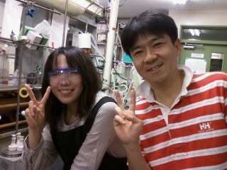 本年度二報目! 本年度二報目の論文がアクセプトされました!タイトル A Total Synthesis of Yellowish Aphid Pigment Furanaphin through Fries Rearrangement Assisted with Boron Trifluoride-Acetic Acid Complex著者 Nishimura, T.; Iwata, T.; Maegawa, H.; Nishii, T.; Matsugasko, M.; Kaku, H.; Horikawa, M.; Tsunoda, T. アブラムシのもつ色素の構造と機能に興味を持ち,追いかけてきていることは既にブログでもHPでも触れてきましたが,今回の報告はアブラムシ黄色色素「furanaphin」の合成に成功したという論文です. 以前のブログに,当時のマスターの岩田くんが合成達成!と銘打ったのですが(こことここ),まだ収率に納得のいかない部分を残していました. その後引き続き,西村くんが合成段階のブラッシュアップと鍵段階である,電子求引性基のついた芳香族化合物のFries転位(英語版Wikipedia)の一般性を確かめてくれました.その成果として,今回Synlett誌にアクセプトされました. 天然物合成達成と鍵反応の精査をおこなったいい論文に仕上がりました. 5月23日にアクセプトの報が届いたので,早速お祝いしました(品化らしいネ). (当日の主役,西村くんすでに酔ってる??) (乾杯前なので,自分に酔ってる?) いいね!