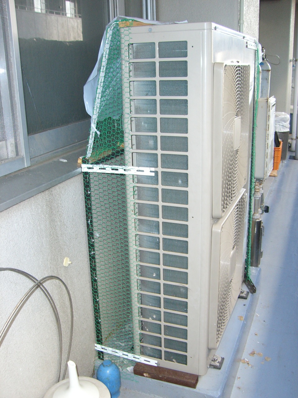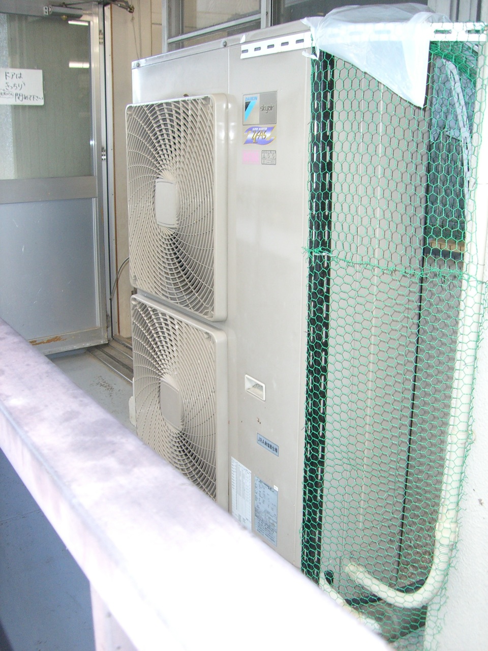 ベランダ鳩よけネットの新調 こんばんは これまで,全然更新できていなかった行事等を更新していこうかと... 第一弾は,「ベランダ鳩よけネット」の新調です! 薬学棟には多くの鳩が飛来してきます. 品化のある6階北側も例に漏れず,たくさんやってきていました. ハト糞の被害は甚大で,大掃除の時には掃除が大変です(卒業生にもお世話になりました). また,巣作りを始めるとかたづけるのですが,雛がかえってしまうとちびどもが巣立っていくのを待つしかありません(むやみに殺せないからです). そこで,品化の鳩対策としては 1.定期的なお掃除 2.学部生の毎日のハト追いベランダ散歩 3.室外機裏への布製網の設置 等をしてきました. それなりに効果があったのですが,網が老朽化してぼろぼろになってきて,隙間から進入するハトが後を絶たなくなりました. それを見つけた稲井助教(当時)が,一念発起して室外機裏へ金の網を設置してくれました! 西村くん,学部生も参加して一大事業となりました.薬学部薬品化学研究室土木課(?)誕生です. 出来上がった代物はこれ!(超本気モードです!!) 稲井さんが転出された後も,第二期作成工事は続き21号館6階北側すべての室外機に網を設置しました. 勇者の面々です! (左から)ヒガちゃん,西村くん,かどちゃん,アヤネッティ ご苦労様でした.これ以降ハトが寄りついているのを見なくなりました.追:稲井さん.写真がどっかいっちゃいました...ゴメン.