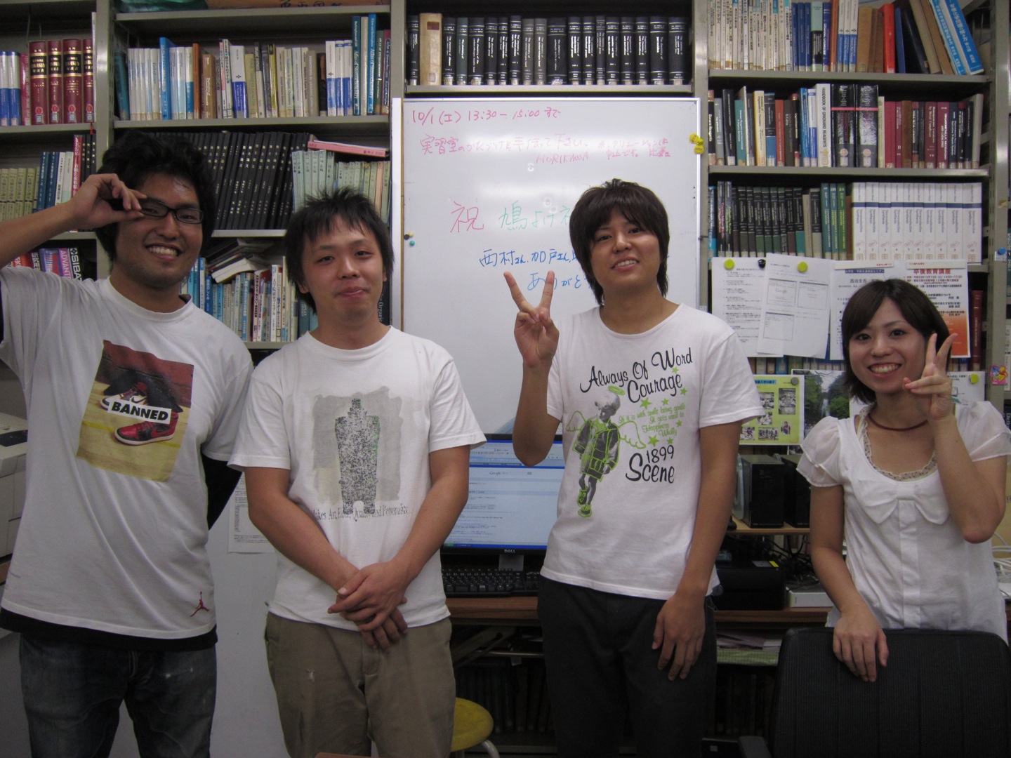 大掃除&忘年会 今日は,大掃除でした.一年間の垢を落として,また新たな年に向かいます.西村くん以下,学部生のみんなが総出でキレイにしてくれました.感謝.というわけで,今夜は『忘年会!』でっす.騒ぎましょう!