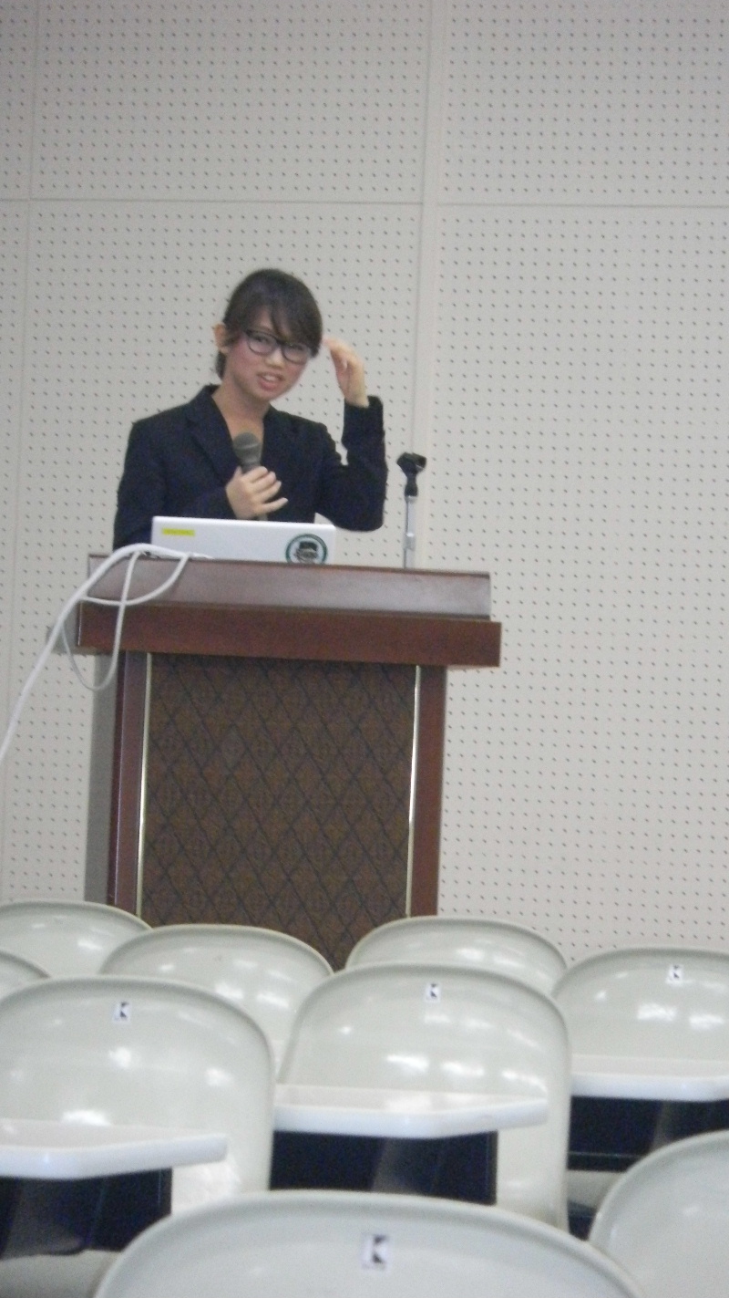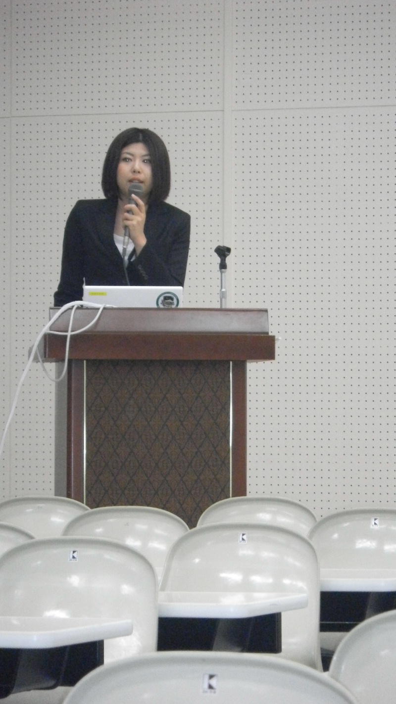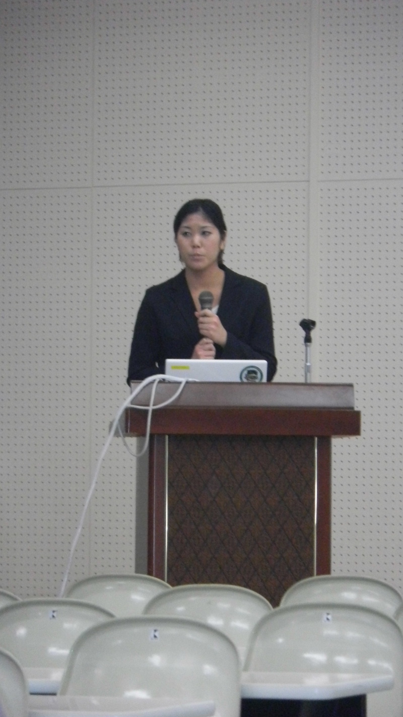 卒論発表(2011.8.1) 6年制になって初めての卒論発表会が8/1に行われました.一言で言うと...結構みんな本番強い!(ただ話すのが好きだからか!?)それぞれいい発表が出来たんじゃないかなちょっとだけみんなの勇姿をのせておきます.テーマなんかは前の加来さんの記事を参考にして頂ければと思いますトップバッター相部2番てんてん(天野)3番千愛ちゃん(青栁)4番谷ちゃんラスト優ちゃん(西内)とりあえず今回は口頭発表の写真だけですが...ゴメンナサイポスター発表の方はまた後ほどアップしてもらいましょう.この論文を制作するにあたり角田さん,加来さん,堀川さん,稲井さん最後まで暖かくご指導くださり,本当にありがとうございました.後輩のみんなにもずいぶんお世話になりました.ありがとう!このあとはしっかりおいしいお酒を頂きましたつぎは研究室旅行じゃ!!!tani