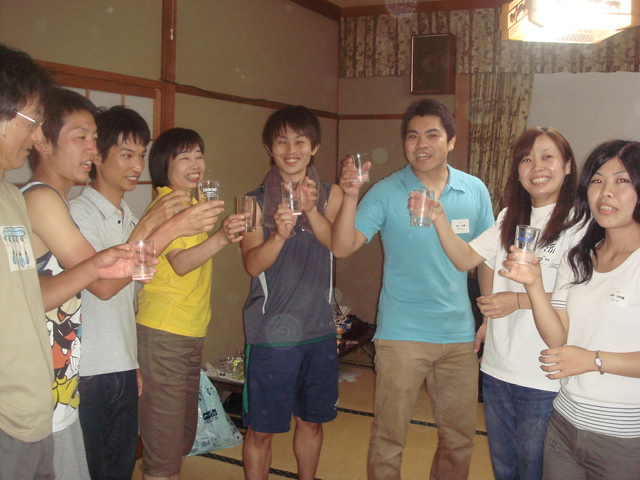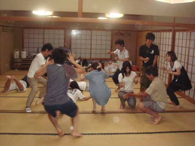 夏は終わらせない!第2弾!(`09.9.5-6)part2 さて、夜からのお話です。夜はご飯を食べたあと、研究室旅行恒例のフルーツバスケットですみなさん、もういい大人になってますが、そんな事おかまいなしです!10回して、真ん中に立ってしまった人は罰ゲームでしたドリアンのジュース、いただきました(笑)みなさん、この後顔がゆがんでましたねこの後は、この前の研究室旅行でもやった「進化ゲーム」上の写真は人間に進化した人間の世界からゴキブリ、ウサギ、ゴリラの世界を見ていますゴキブリのまま進化できなかった人も…(笑)この後はそれぞれ、昔の話で盛り上がったり、仕事の事を話したり…夜中4時ぐらいには走り幅跳びをしたとか…笑楽しい楽しい旅行でした