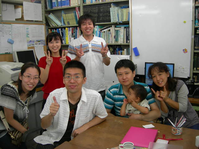 角田研一期生 来徳!!(写真UP!!) 薬品化学角田研究室になって,14年.そのはじめの卒論生「第一期生」が,シルバーウィークにやってきました.この記事書いてる加来は,そのときM2(通称マイナス2期生)伊佐くん(いさまん),泉くん,鈴木くん(リンリン),宇都宮さん(うっきー,よしのり)の四人です.その他,いさまんとリンリンの奥様も来られましたよ.セミナー室で写真を撮ったのですが,アップは後ほど(加来は仕事中です!!)昨日は,みんなで飲みました.2時くらいまで?おかげで,リンリンは二日酔いで,何も受け付けないほどだそうで...残念!!しっかしみなさん,おっさんになりましたね.また来てくださいねそうそう,昨晩は阿部くん(べーやん)もいたんですよ.