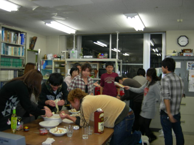 芋煮会(`09.10.31) 更新の順番を間違えましたが、10月31日は毎年恒例芋煮会でした今回はいつもとは違って徳島大学の宍戸研究室との合同芋煮会でした宍戸研究室とは毎年1回交流会を行っていますいつもはお互いの研究室内での交流会ですが、今回は大神子での交流会でした芋煮は品化で1つ、宍戸研で1つ作りました宍戸研はBBQをし、私達はサンマを焼いてお互いの料理をいただきました突如現れた猫もおいしくサンマを食べていました(笑)食べた後はいろんな話をしたり、ゲームをしたりして楽しみましたまた来年に交流会するときはよろしくお願いします PR
