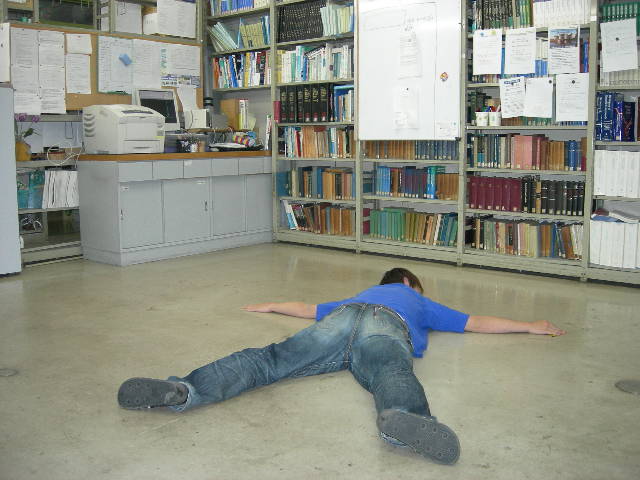 明日はワックスがけ 明日の朝は21号館6階のワックスがけです品化の研究室内も床に置いてるものすべて廊下へ出しました.床に置いてるものすべてを出すと,研究室はこんなにも広かったんだと感じましたこれだけ広ければ,人と人がすれ違う時もスムーズなんですけどね(笑)6階すべての研究室が廊下に荷物を出しているため,廊下はこんな感じに普通でも狭い廊下がさらにせまくなりました何か変な人がいるようないないような...何もなくなったセミナー室,そらもう何だってできちゃいますこんな事もできました.明日の夕方にはピカピカの床に仕上がってることだと思います