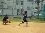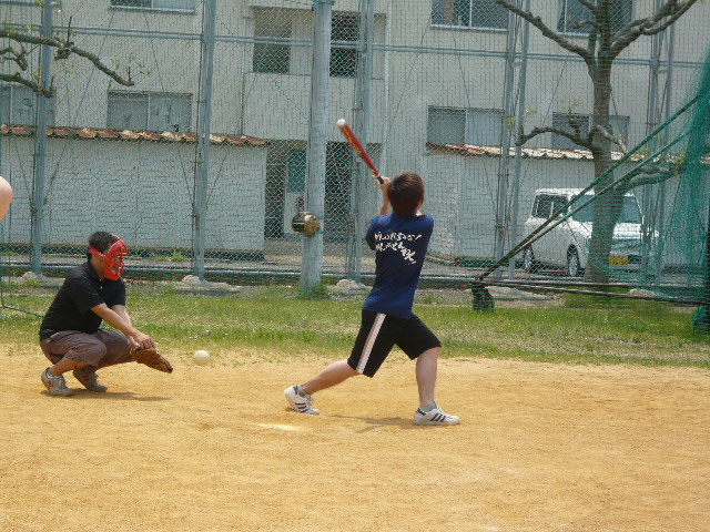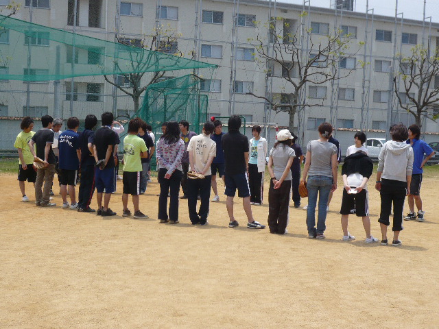 ソフトボール大会('09.5.24) どうも!時々ブロガーのたいちゃんです5月24日に分析主催のソフトボール大会に参加してきました。品化だけでは参加人数が足りなかったので、薬化と生薬の合同チームで参加してまいりました他のチームには経験者が多いみたいで、正直、勝てんやろ!?って思ってました。でもいざ試合をしてみると、みんなが頑張ってくれたので結果はなんと...2位!!景品のお菓子はみんなで分けて美味しくいただきました。試合前の写真です。ちなみに...僕は見事に空振りです背中には『がんばれ言うな!がんばっとんねん!!』って書いてあります。